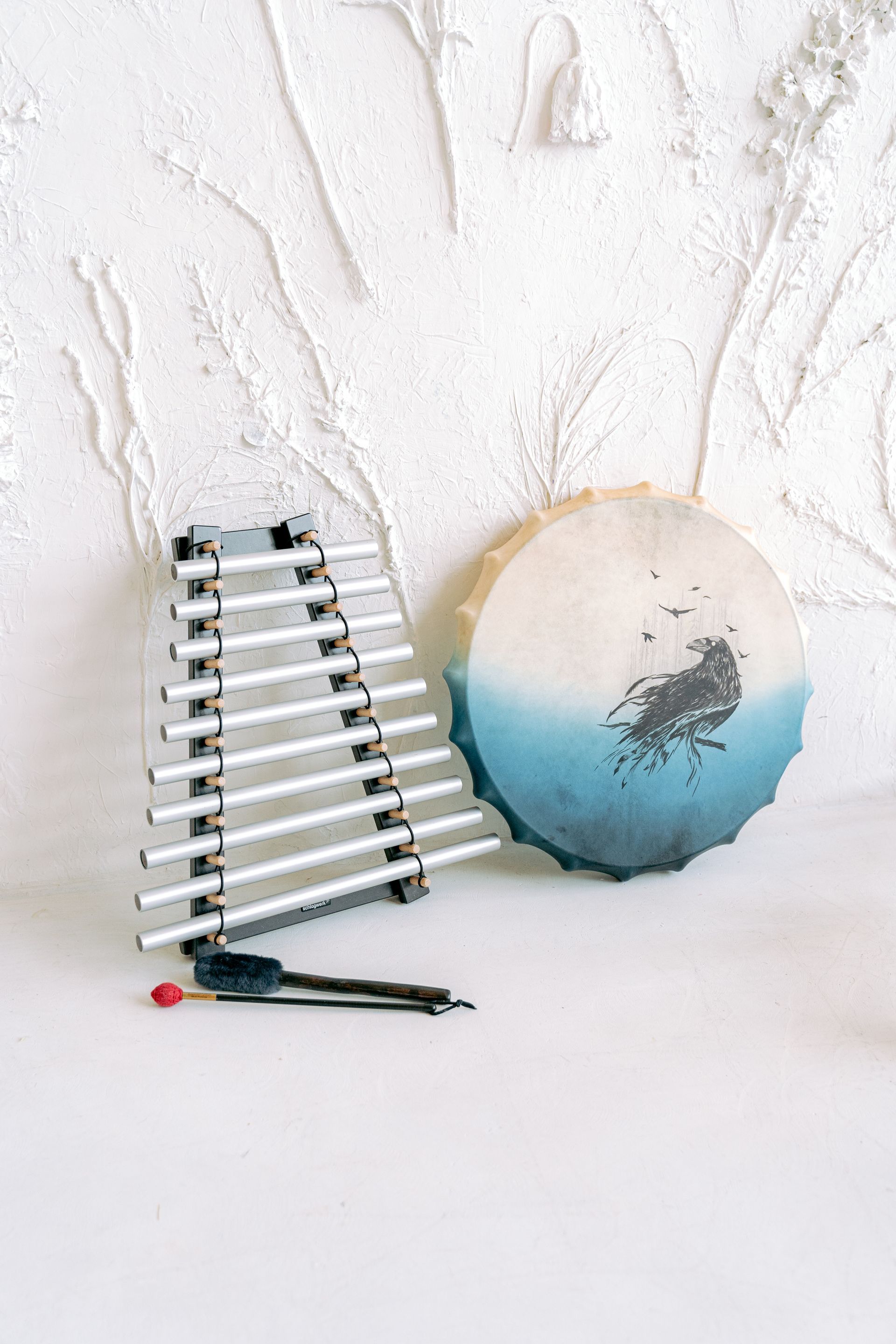 The body, being a complex vibrational system, can be influenced and harmonised by external vibrations. The resonant frequencies of the instruments synchronise with the body's natural frequencies.